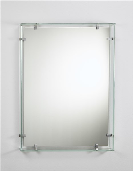 Mirror model "2014". Milan, 1960s/1970s. Frame in bevelled glass, supports in nickel-plated brass. (58x80x6.5 cm.) (slight defects)