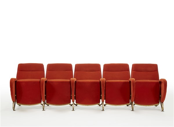 Carlo Mollino Una fila di cinque poltrone con sedile a ribalta. Torino, 1957-195