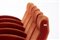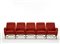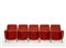 A row of five armchairs. Turin, 1957-1958. Brass tube, upholstery covered in red wool velvet.
