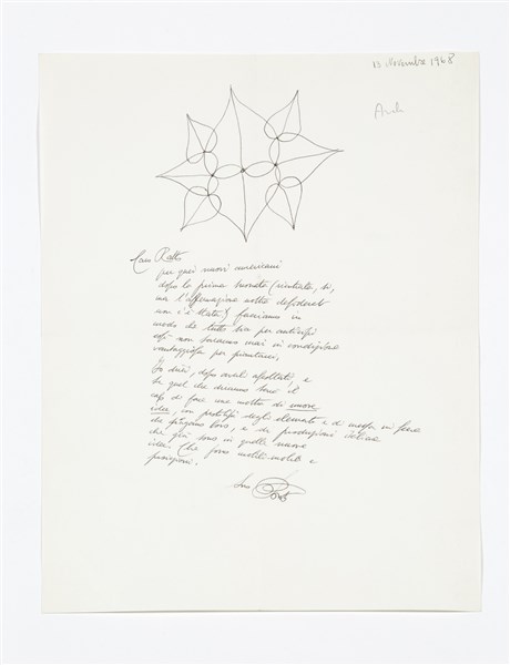 Lettera autografa inviata a Giovanni Ratto, membro della redazione della rivista "Domus". Non locata, datata 13 novembre 1968. Inchiostro nero su carta. (cm 27,9x21,5)