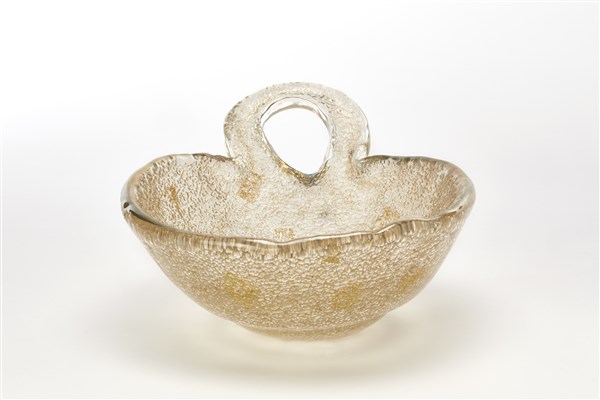 Ercole Barovier Grande coppa in vetro soffiato rugiadoso sulla superficie intern