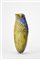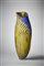 Grande vaso di forma organica della serie "Stromboli". Murano, 2004. Vetro soffiato incolore a canne policrome raccolte in campiture nei toni del giallo, dell'azzurro-blu e del nero-grigio. Superficie esterna fittamente incisa alla mola con fitte scanalature orizzontali e ampie costolature verticali. Firmato e datato a punta sotto la base. (h cm 48)