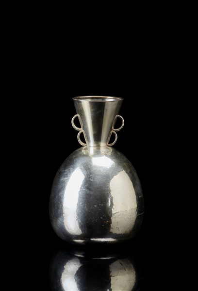Manifattura italiana Vaso biansato in argento martellinato. Anni '30. Titolo 800