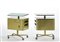 * Coppia di comodini su ruote ad un cassetto, un'anta, due ripiani a giorno e una tasca porta riviste su un lato. Produzione Officine Valsecchi, Milano, 1957. Acciaio stampato e verniciato color verde metallizzato, piani rivestiti in formica verdina, bordure in alluminio ottonato. (cm 66x74,5x35,5) (lievi difetti)