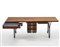 Center desk of the series "Urio". Rome, 1958ca. Structure and top in Indian rosewood veneered, bordered and solid, lateral top covered in black laminate, three drawers with bands in aluminum plate, metal tips. (210x72x150 cm.) (
