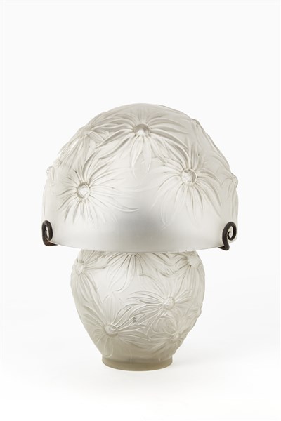 Etling Lampada da tavolo in vetro soffiato a stampo e decorato a rilievo. Franci