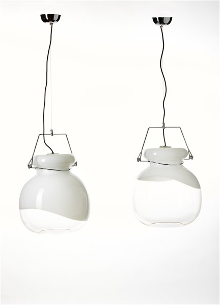 Lot 267 | Manifattura di Murano Coppia di lampade a sospensione con struttura in acciaio e