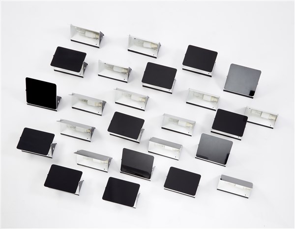 Lotto composto da venticinque lampade da parete nello stile delle lampade CP1 di Charlotte Perriand. Produzione recente. Metallo verniciato nero e bianco. (cm 12,5x16,5x7) (lievi difetti)