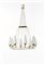 Lampada a sospensione a otto fiamme in ottone lucidato e verniciato bianco, paralumi in vetro incamiciato lattimo. Italia, anni '40/'50. (h cm 100; d cm 70) (lievi difetti)
