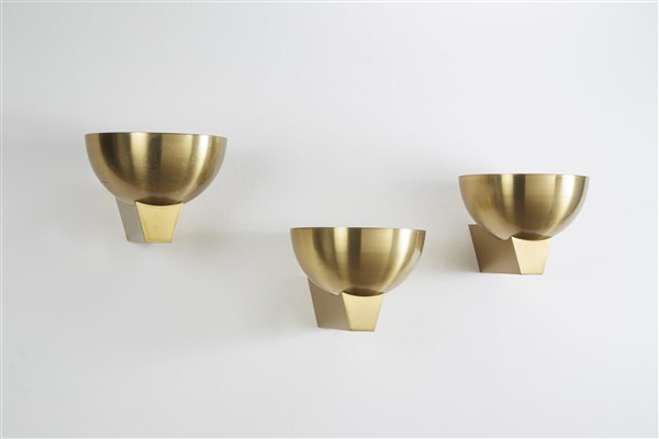 Jean Perzel Lotto di tre appliques in metallo dorato brunito, montate su pannell