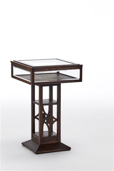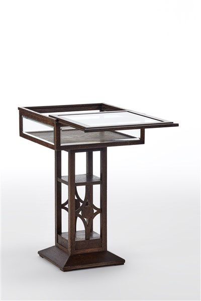 Tavolo espositore. Produzione Wiener Werkstätte, Vienna, 1904. Rovere ebanizzato e vetrine in cristallo bisellato. (cm 45x72,5x45) (lievi difetti)