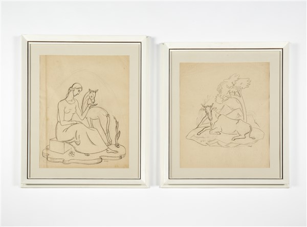 Lot of two sketches for sculptural decorations with a classical subject. Graphite on paper. Spice, 1920s/1930s.
