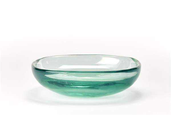 Seguso Centrotavola in vetro massello verdino iridato. Murano, anni '50. (cm 26x