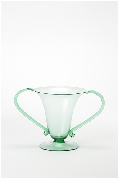 Manifattura di Murano Vaso biansato in vetro soffiato trasparente verdino, ispir