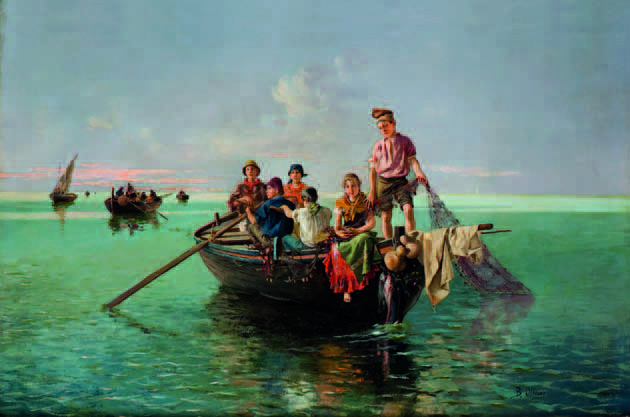Blas Olleros y Quintana Avila 1851 – Firenze 1919 MARINA CON PESCATORI olio su tela, cm 60x91. Firmato in basso a destra: B. Olleros