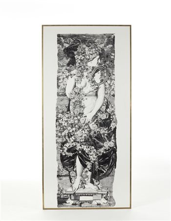 Pannello modello "Venere". Milano, riedizione degli anni '90. Litografia su pannello di legno. Marcato in basso a destra "FORNASETTI MILANO MADE IN ITALY". in cornice di ottone. (cm 210x101,5) (lievi difetti)