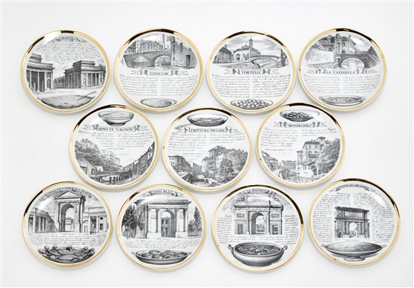 Piero Fornasetti Lotto composto da cinque piatti della serie "Porte di Milano" u