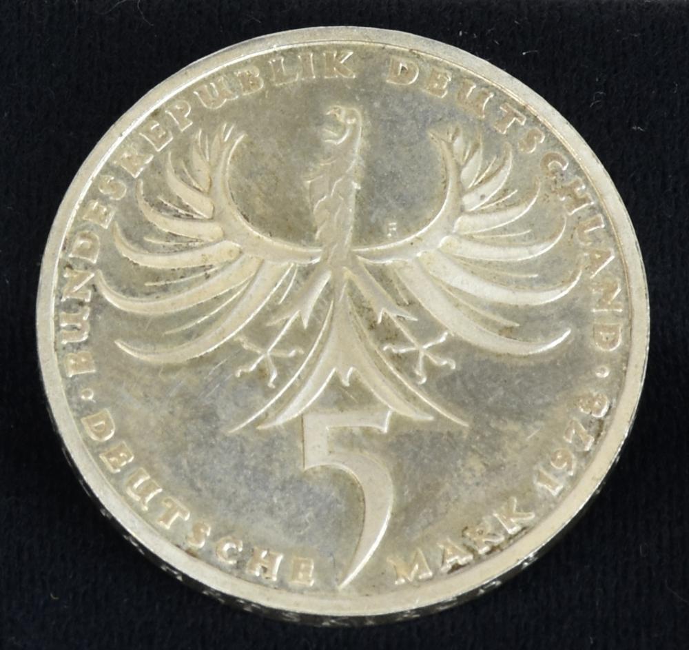 MONETA IN ARGENTO da 5 marchi, anno 1978 sul fronte: Architettura di...