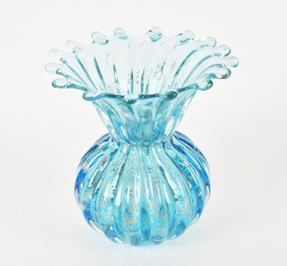 Lot 5 | VASO IN VETRO DI MURANO blu con inclusioni in foglia d'oro, Formia Fornace...