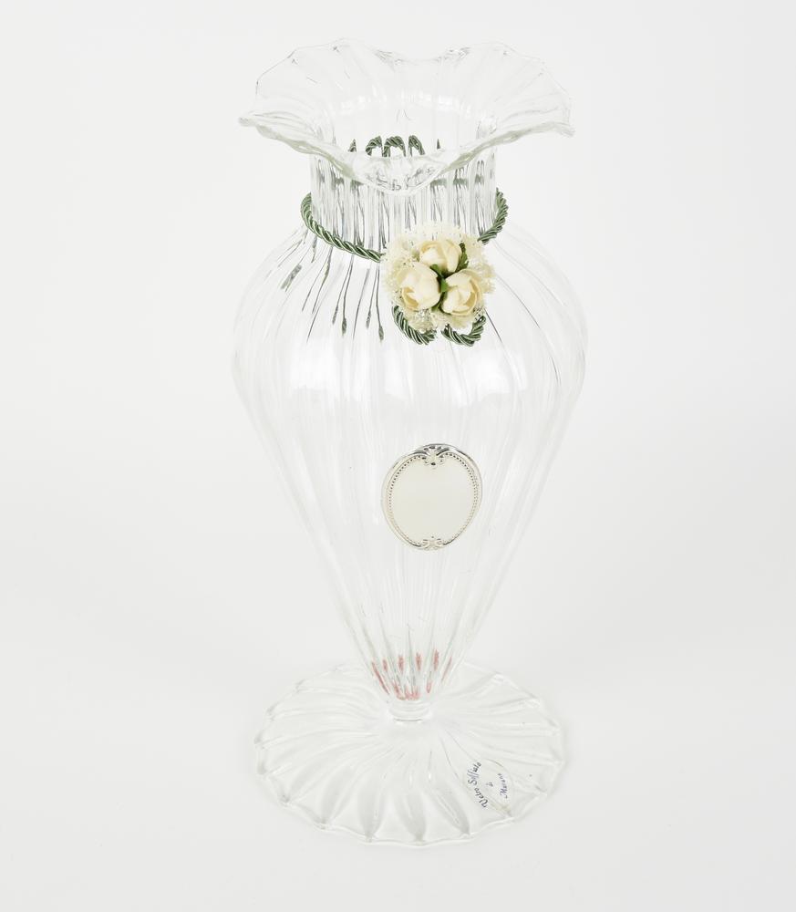 VASO IN VETRO SOFFIATO DI MURANO con decorazione in argento Sterling 925 alt....