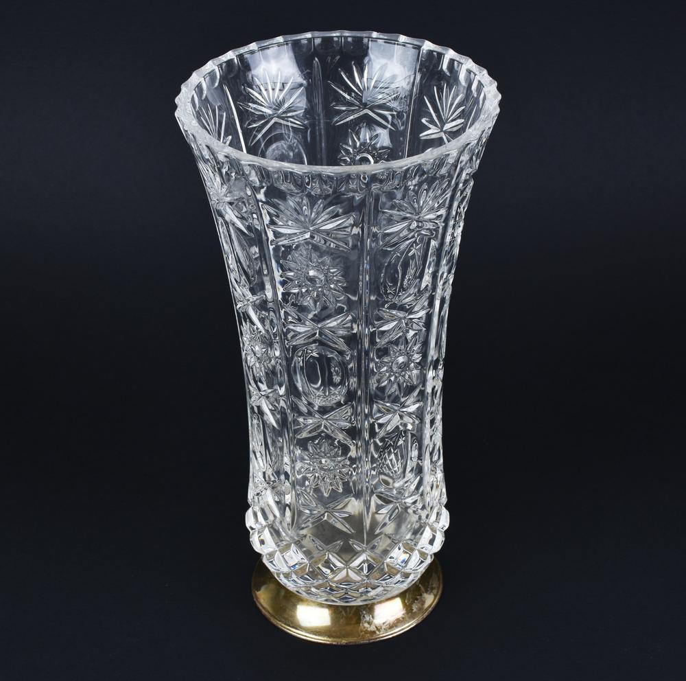 VASO IN VETRO stampato e molato a imitazione cristallo di Boemia, con base in...