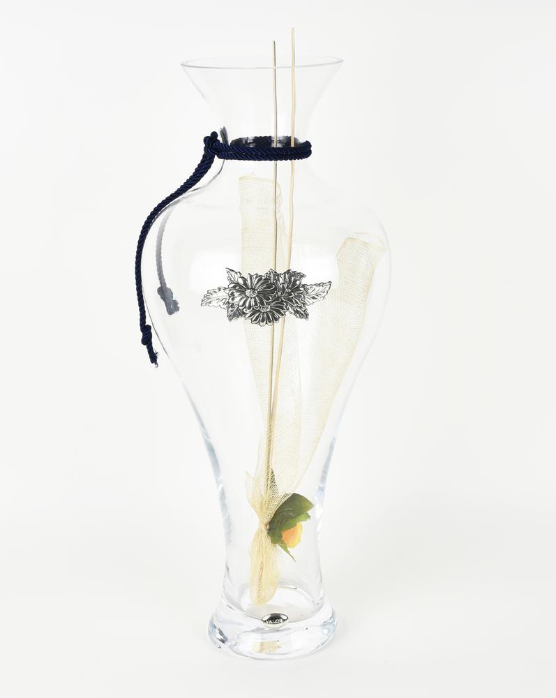 GRANDE VASO IN VETRO SOFFIATO con decorazione in argento Sterling 925,...