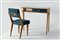 Gio Ponti SCRITTOIO E SEDIA, 1950 circa Prodotti da Fratelli Marelli, Cantù. Scrittoio a tre gambe in noce, ottone, vetro e rivestimenti in tessuto scamosciato blu. Opere registrate presso Gio Ponti Archives con il n. 09026/000; sedia: cm 79x38x44; scrittoio: cm 75x80x42