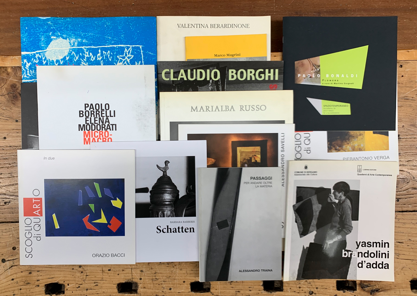 Lotto unico composto da 20 cataloghi riferiti ad esposizioni dei seguenti artisti: Yasmin Brandolini D'Adda, Elena Modorati, Carlo Mo, Paolo Gallerani, Gian Carlo Bulli, Regina, Alessandro Traina, Gaetano Fracassio, Paolo Bonaldi, Pierantonio Verga, Orazio Bacci, Barbara barberis, Alessandro savelli, Paolo Borrelli, Marialba Russo, Claudio Borghi, Giuliana Balice, Fernando Nannetti, Valentina Berardinone, Marco Magrini