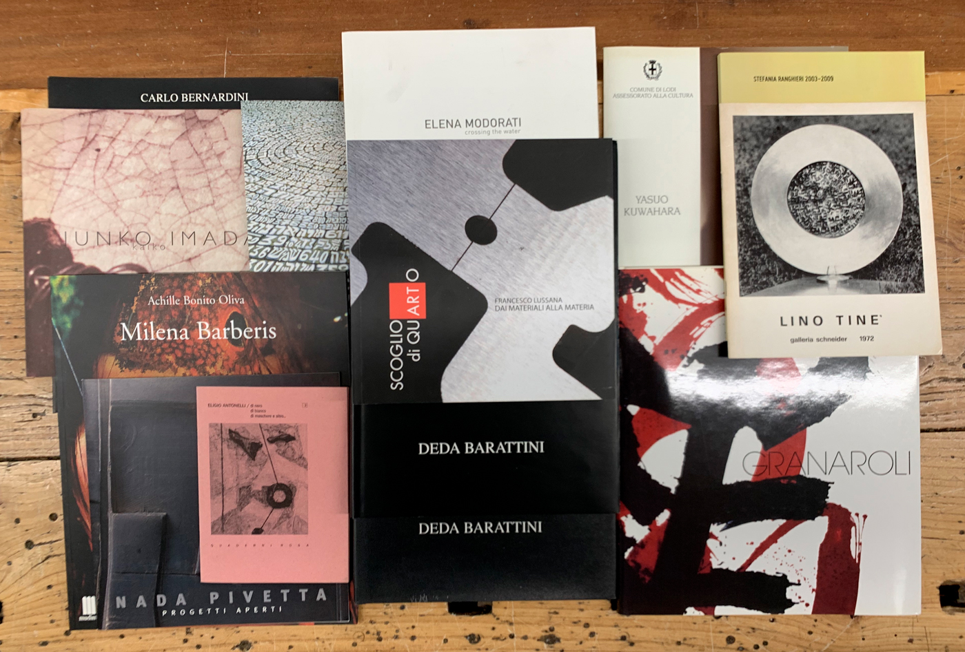 Lotto unico composto da 20 cataloghi riferiti ad esposizioni dei seguenti artisti: Lino Tinè, Yasuo Kuwahara, Claudio Granaroli, Katia Dilella, Eligio Antonelli, Junko Kaiko Imada, Francesco Lussana, Nada Pivetta, Stefania Albertini, Giampiero Moioli, Romana Loda, Romana Bertuzzi, Carlo Bernardini, Milena Barberis, Deda Barattini, Tobia Ravà, Stefania Ranghieri, Valentina Berardinone e Elena Modorati