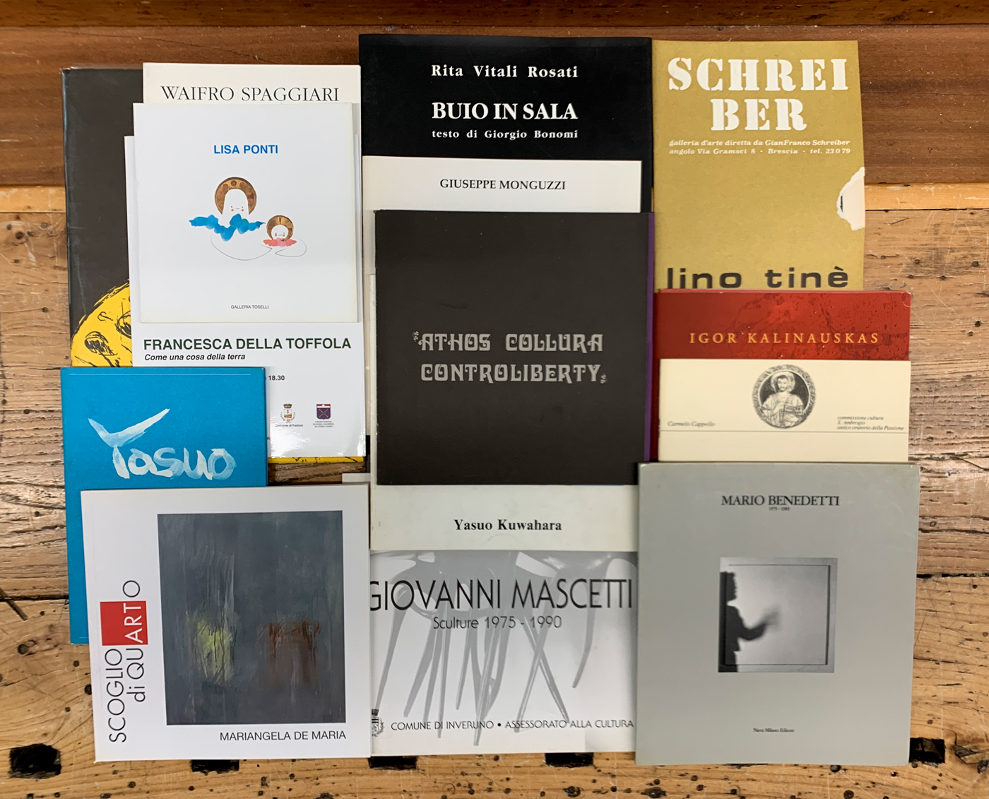 Lotto unico composto da 26 cataloghi riferiti ad esposizioni dei seguenti artisti: Mario Benedetti, Mariangela De Maria, Igor Kalinauskas, Veronica Van Eyck, Carmelo Cappello, Giovanni Mascetti, Lino Tinè, Vaifro Spaggiari, Athos Collura, Rita Vitali Rosati, Yasuo Kuwahara, Lisa Ponti, Francesca della Toffola, Regina, Minervino, Giuseppe Monguzzi, Giacomo Biagio, Stefano Mazzotti, Luca Bossaglia, Laura Pitscheider, Jutta Cuny