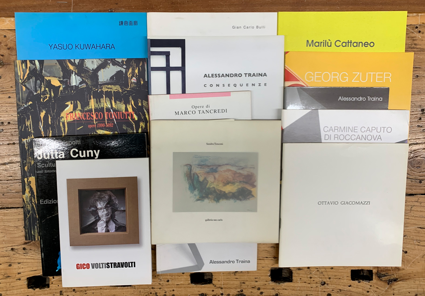 Lotto unico composto da 15 cataloghi riferiti ad esposizioni dei seguenti artisti: Marilù Cattaneo, Stefano Soddu, Alessandro Traina, Gian Carlo Bulli, Gico, Marco Magrini, Marco Tancredi, Sandra Tenconi, Georg Zuter, Ottavio Giacomazzi, Carmine Caputo di Roccasalva, Jutta Cuny, Romeo Sozzi, Giovanna Dal Magro, Gianni Pinna, Yasuo Kuwahara, Francesco Toniutti e Tamegaya