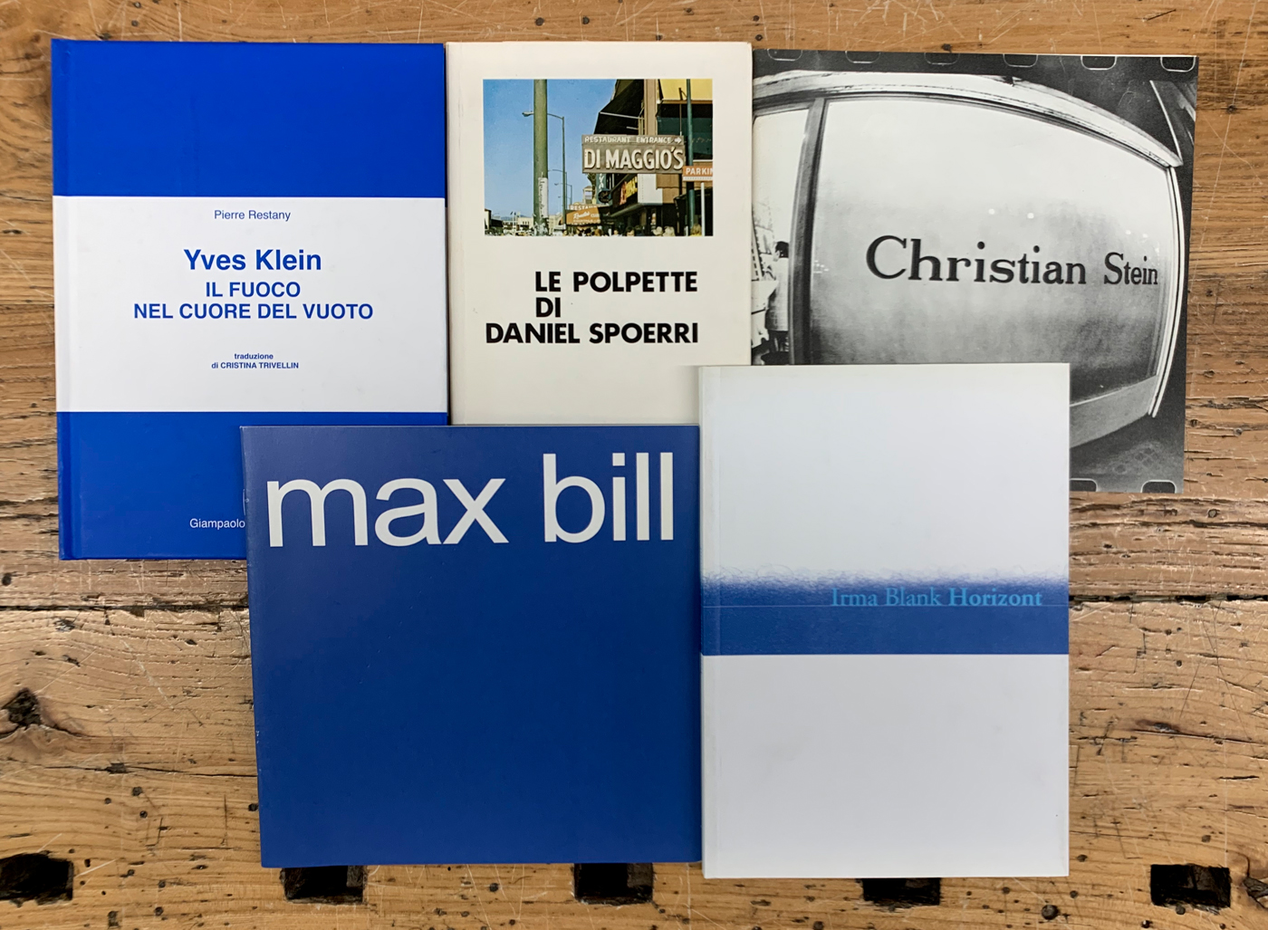 Lotto unico di 5 cataloghi (Bill, Blank, Klein, Spoerri, Orellana):