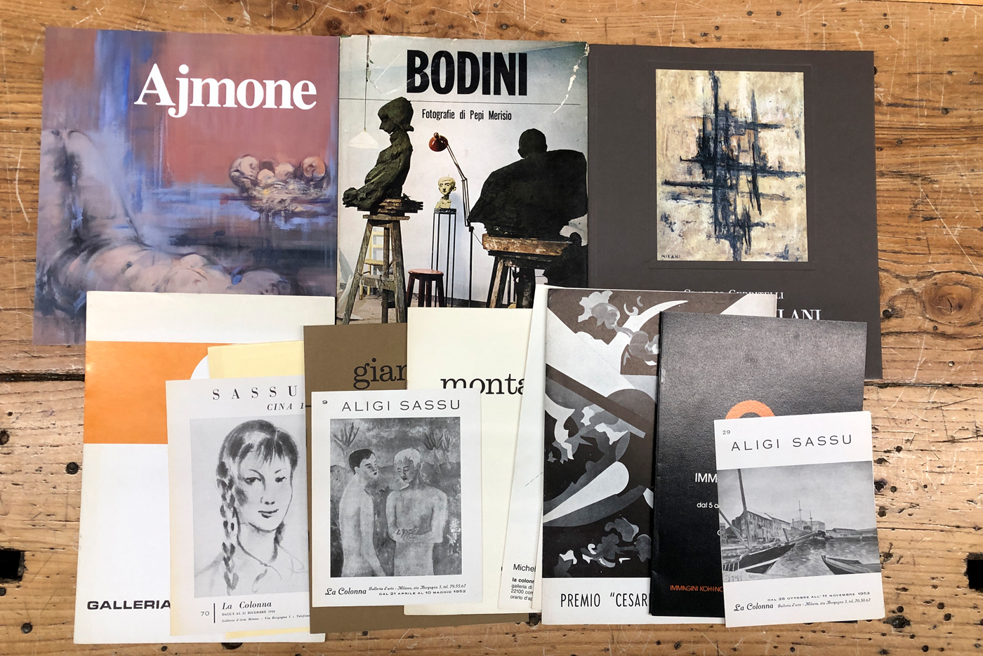 Si allegano numerosi pieghevoli illustrati e piccoli cataloghi relativi ad esposizioni di artisti figurativi e informali, principalmente editi dalla Galleria delle Ore, Milano