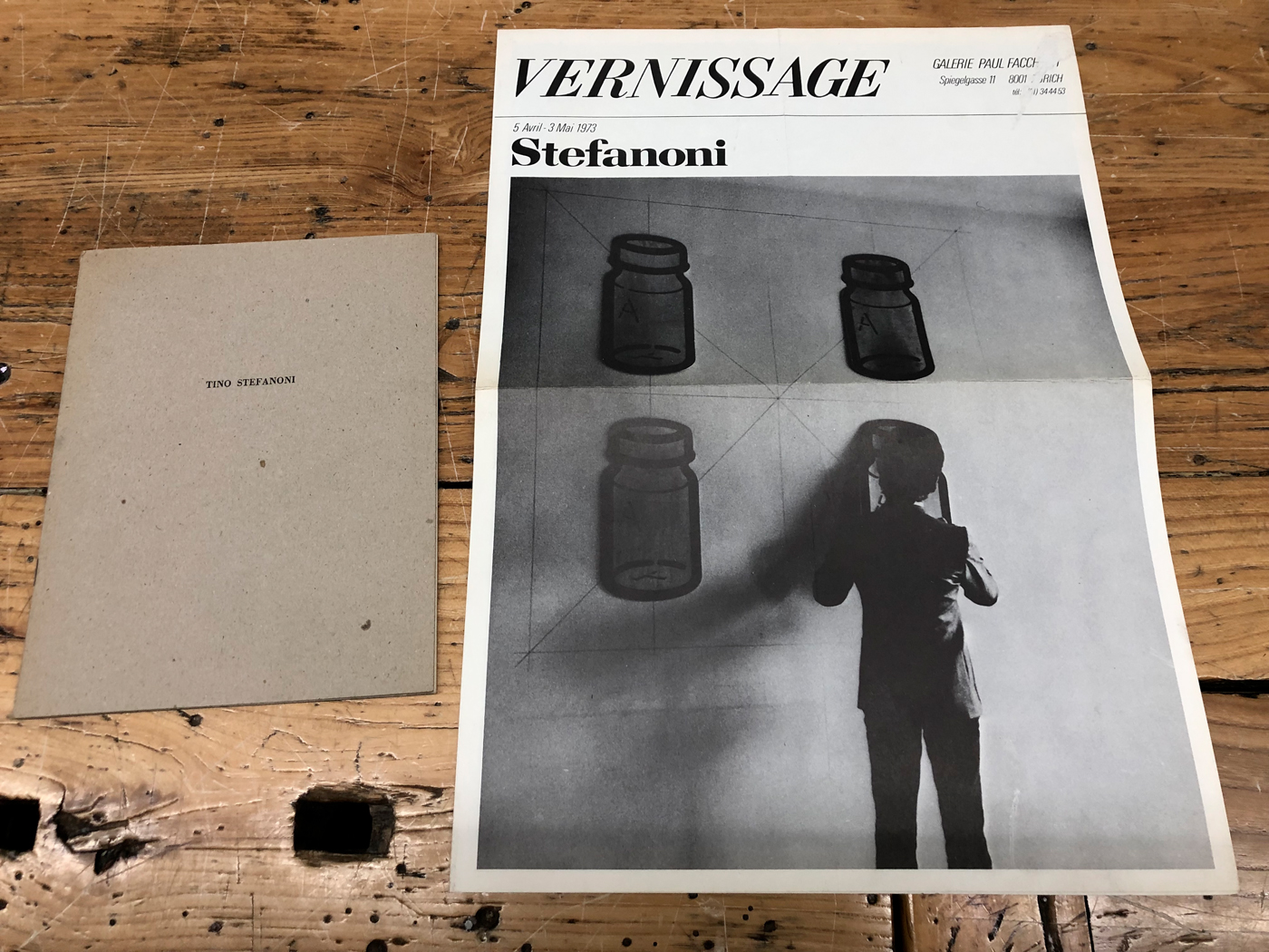 Pieghevole illustrato edito in occasione dell'esposizione tenutasi presso la Galerie Paul Facchetti, Parigi, dal 05/04/1973 al 03/05/1973