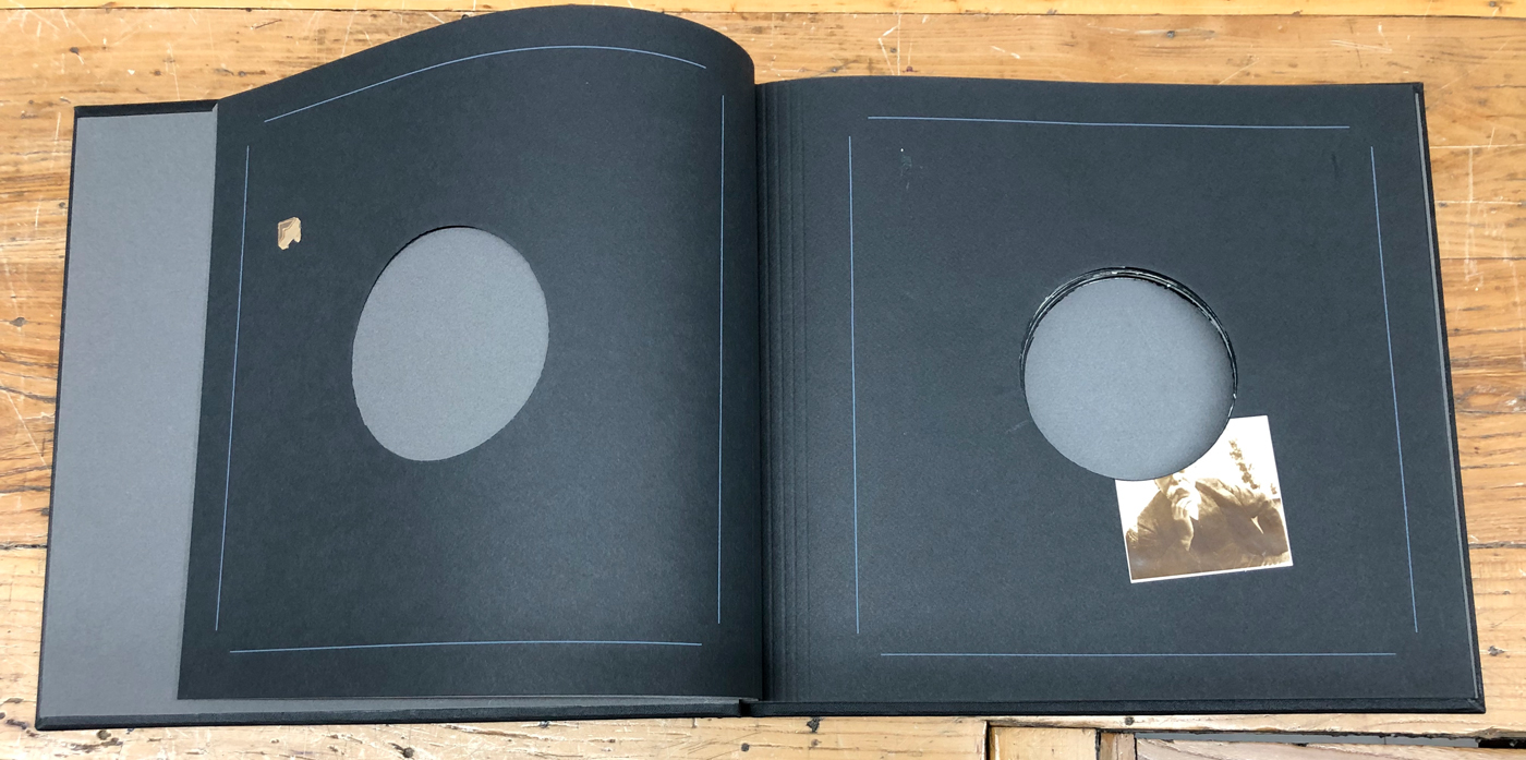 Il catalogo presenta pagine in cartoncino sagomato e traforato con applicazioni di pezzi di fotografie tratte dagli archivi di famiglia dell'Autore