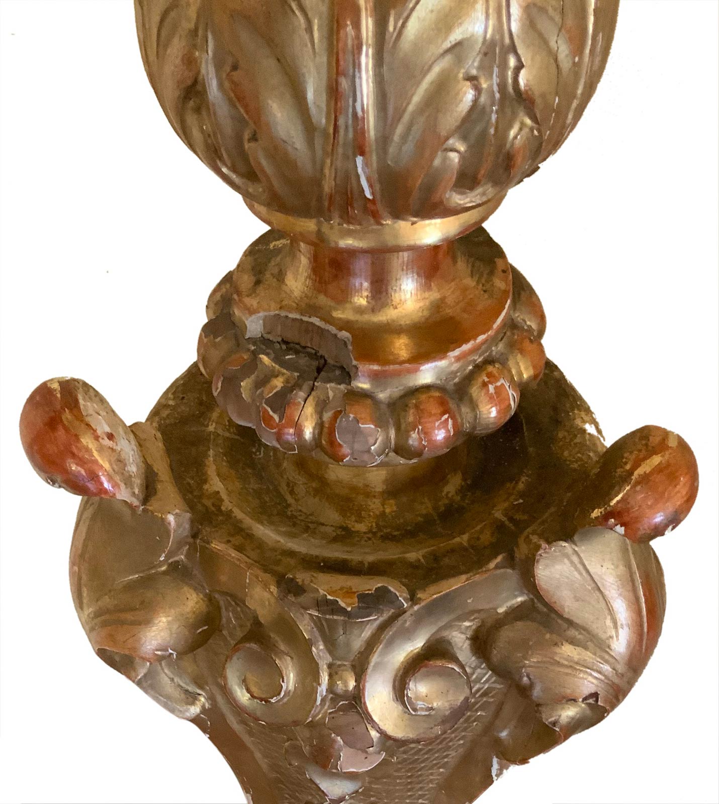Coppia di candelieri in legno dorato a foglia, Sicilia, fine XVIII secolo. H...