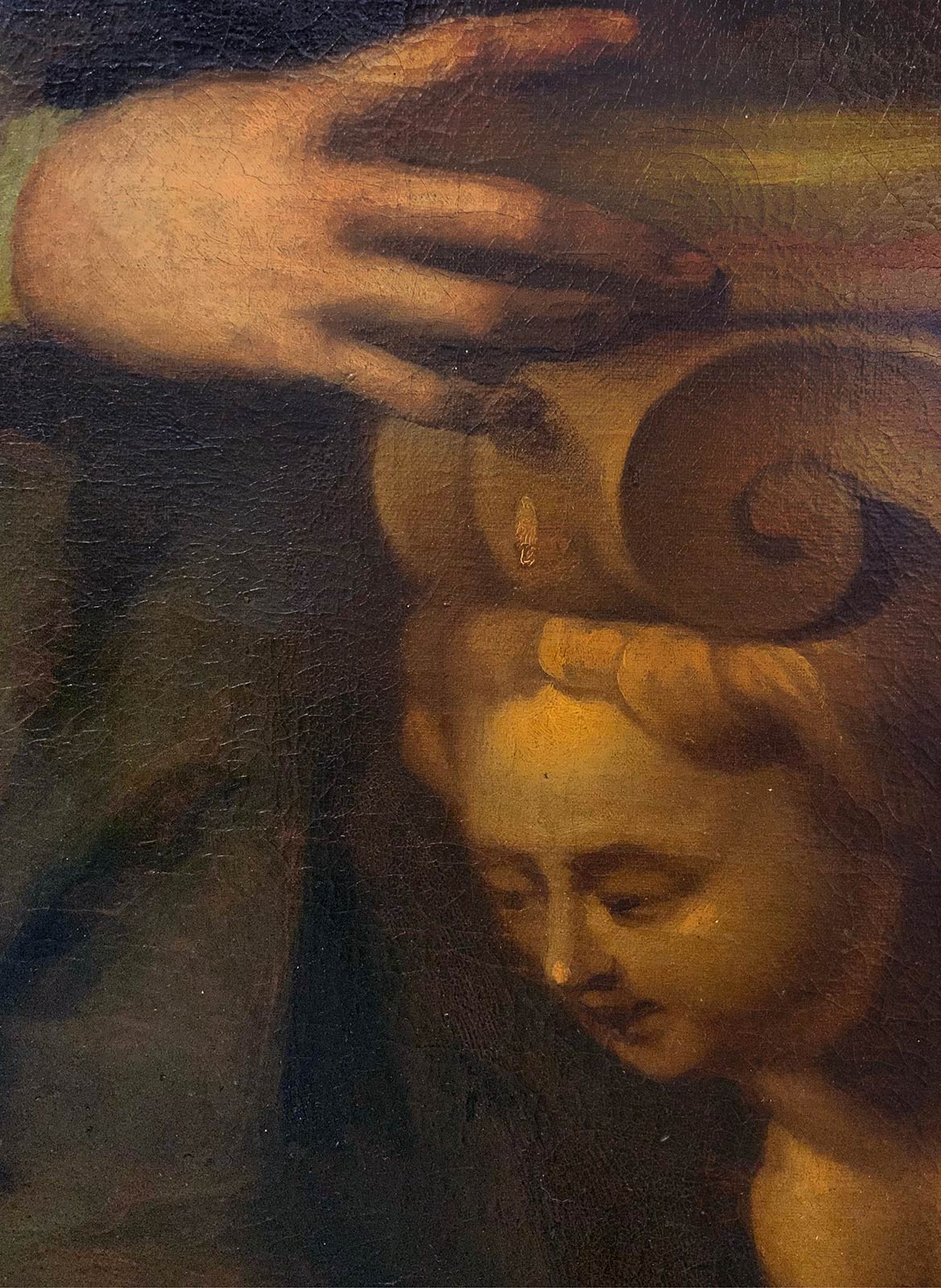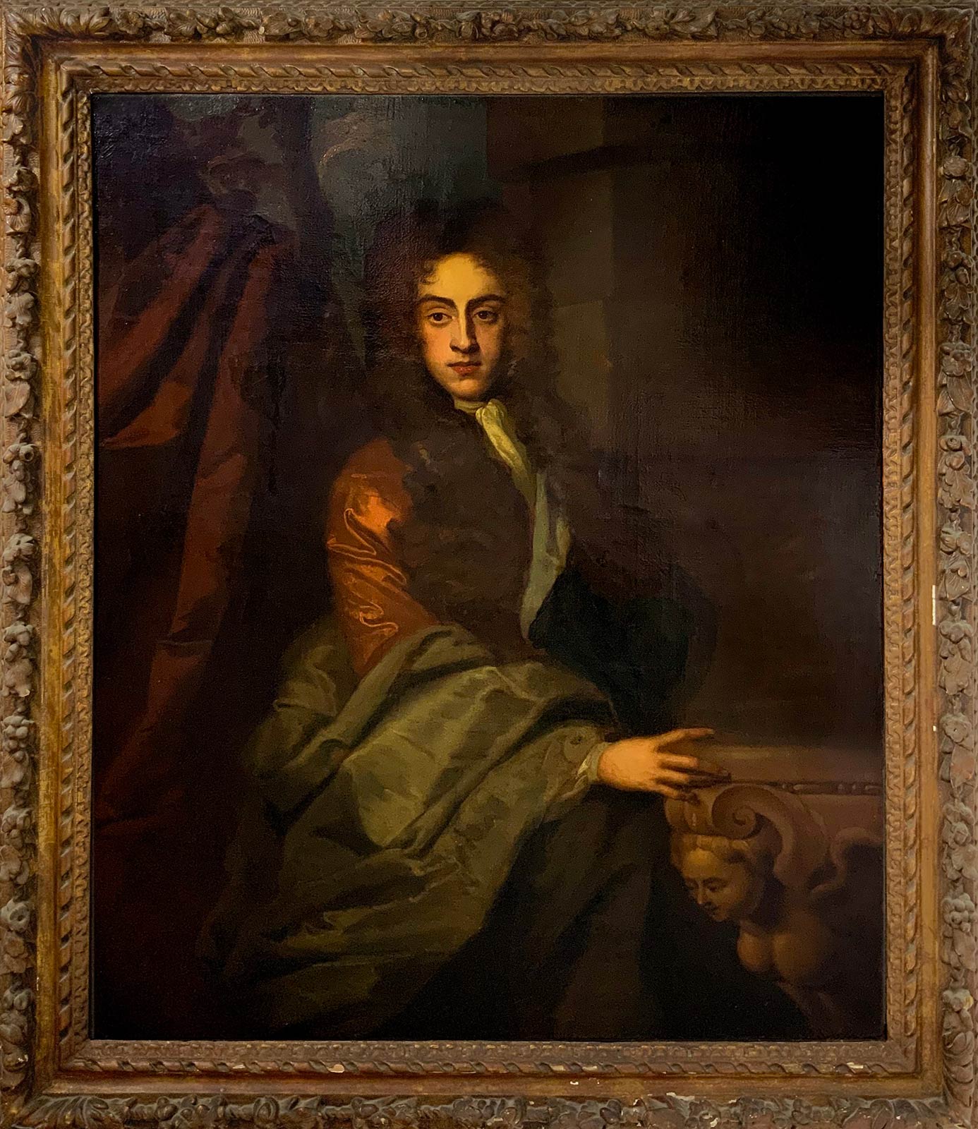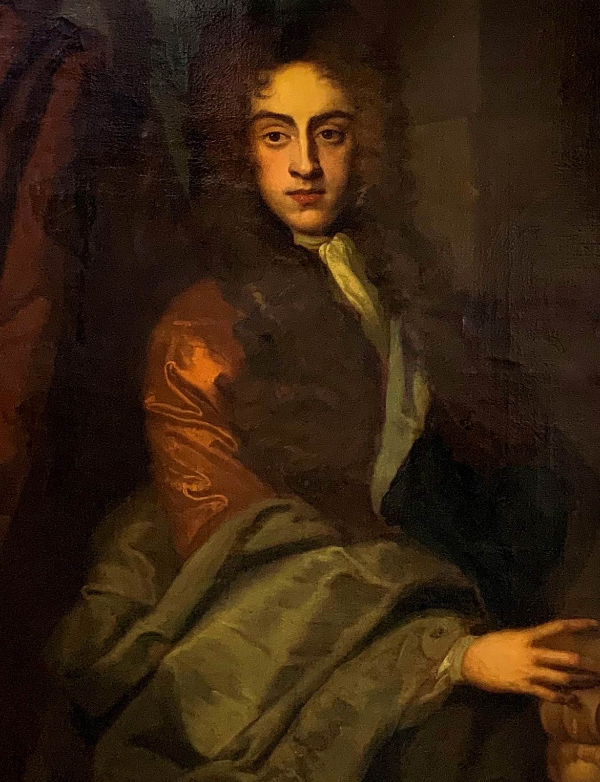 Giovanni Maria delle Piane detto il Mulinaretto (Genova 1670- Monticelli d’Ongina, 1745), Attribuito. Ritratto di nobile gentiluomo genovese, tecnicamente e pittoricamente sono evidenti gli influssi francesi, infatti Genova in quel periodo intessette politicamente rapporti con la Francia e la Corte di Luigi XIV, per tal motivo a Genova perviene una nuova sensibilità e dopo l'influenza di Vandick si fa strada la conoscenza dei pittori ritrattisti francesi quali Rigaud , Nicolas De Largilierre, a cui il pittore aderisce con linguaggio pittorico semplice ma elegante nella resa, con pennellate stese in maniera veloce su cui fa scorrere una luce che mette in evidenza i ricchi tessuti ed il volto del personaggio, Bibliografia, D. Sanguinetti "Genovesi in posa-appunti sulla ritrattistica tra la fine del 600 e 700". 125x100, olio su tela. Vecchia Attribuzione anni '60 di Amadore Porcella , Ex Presidente Federazione Nazionale degli Esperti e Critici d'arte. Provenienza antica collezione del Principe Boncompagni Ludovisi.