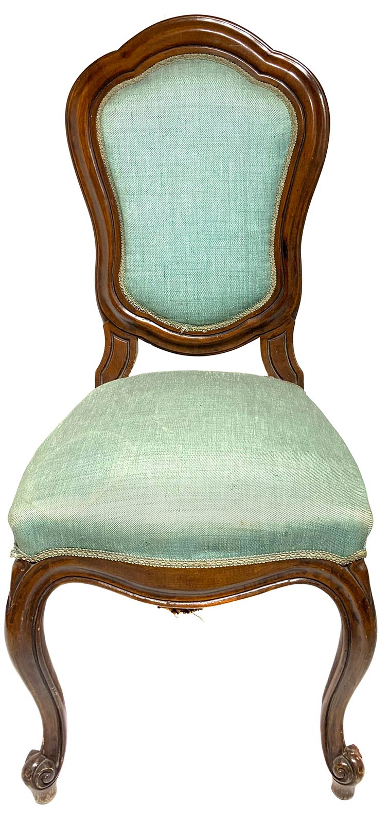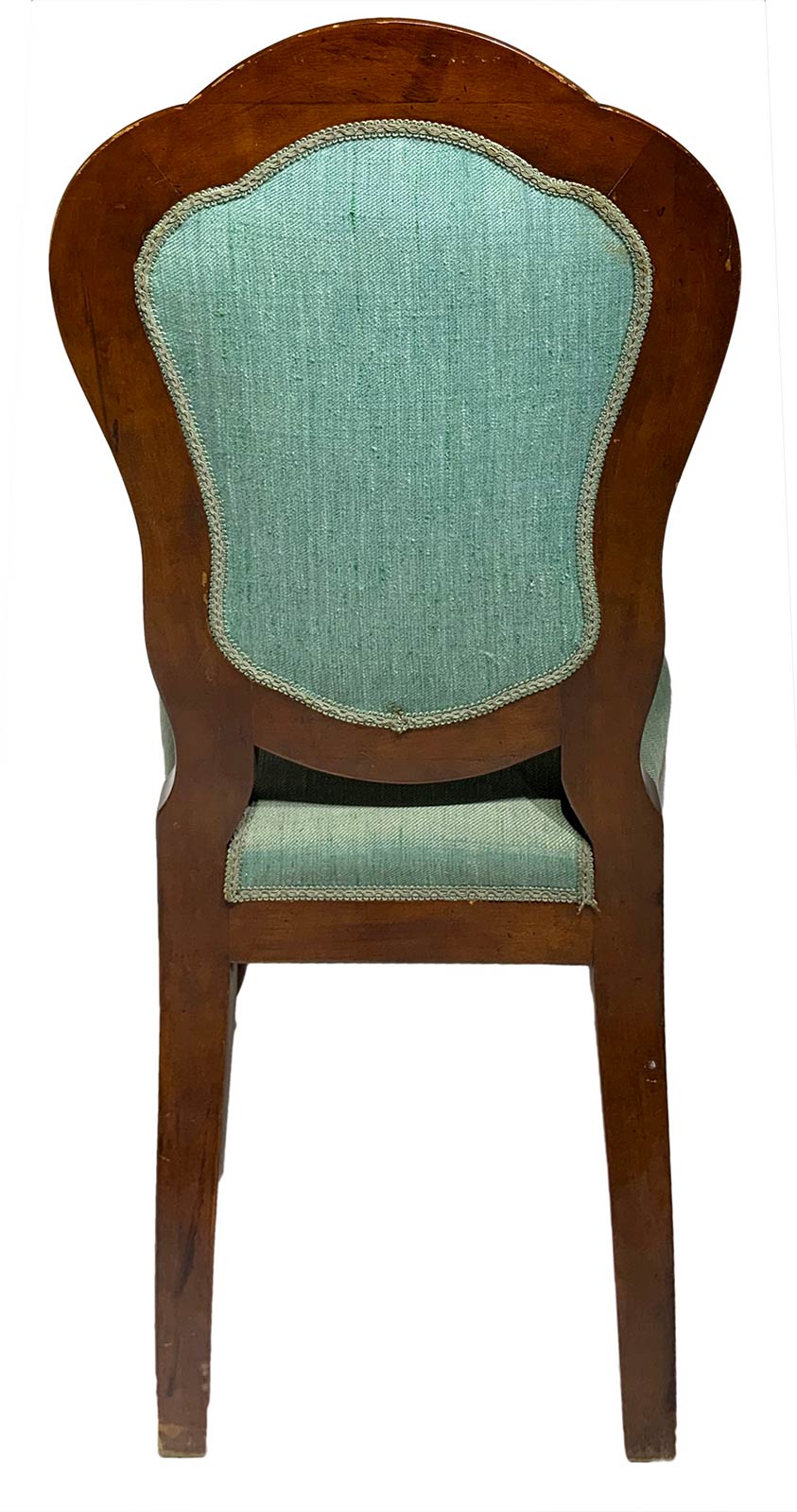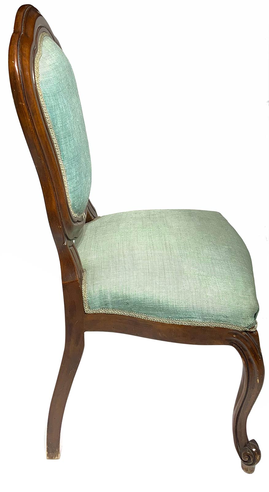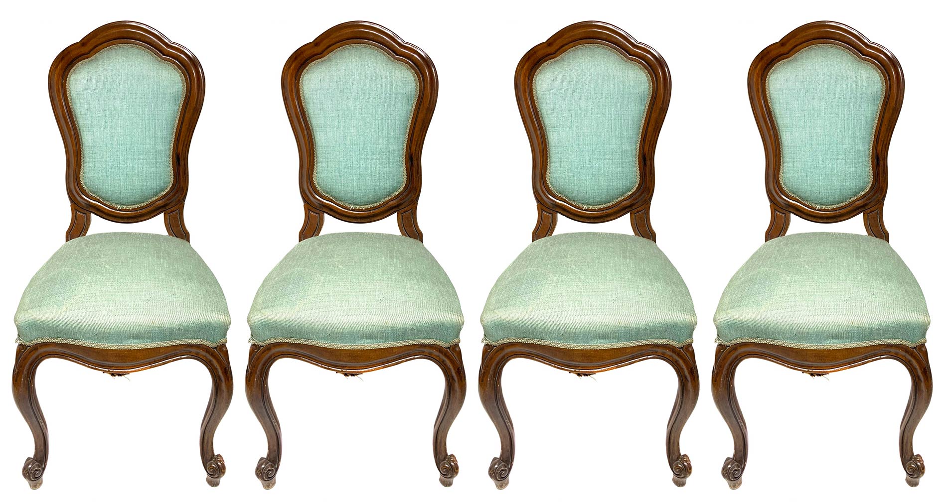 4 sedie in legno di noce, fine XIX Secolo. Piedi a ricciolo. H cm 112