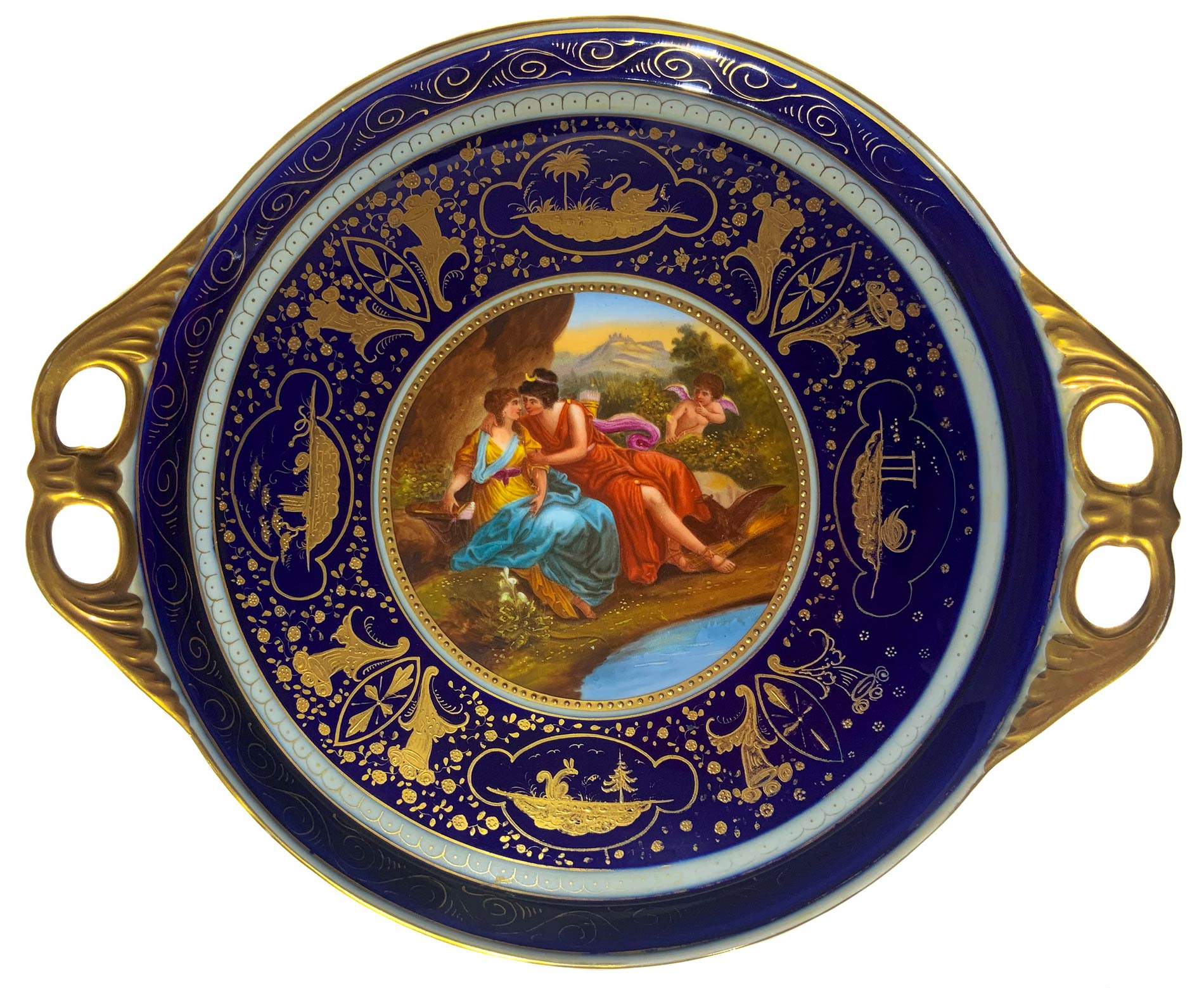 Servizio da tè in porcellana di Vienna, colore blu cobalto con dipinti...