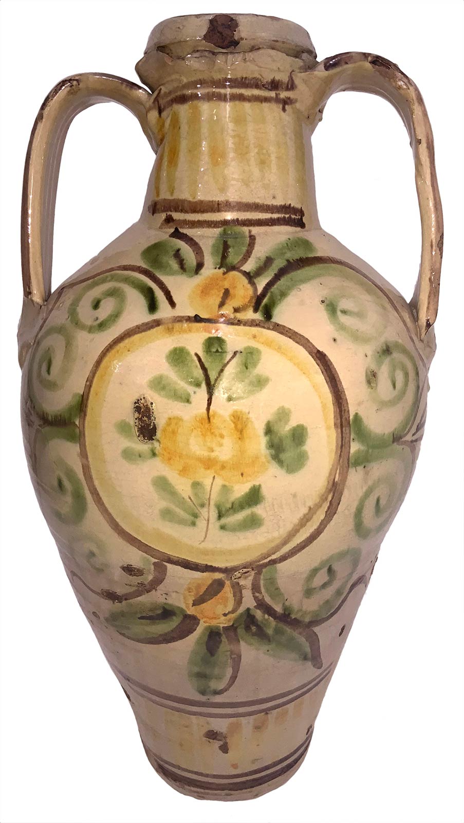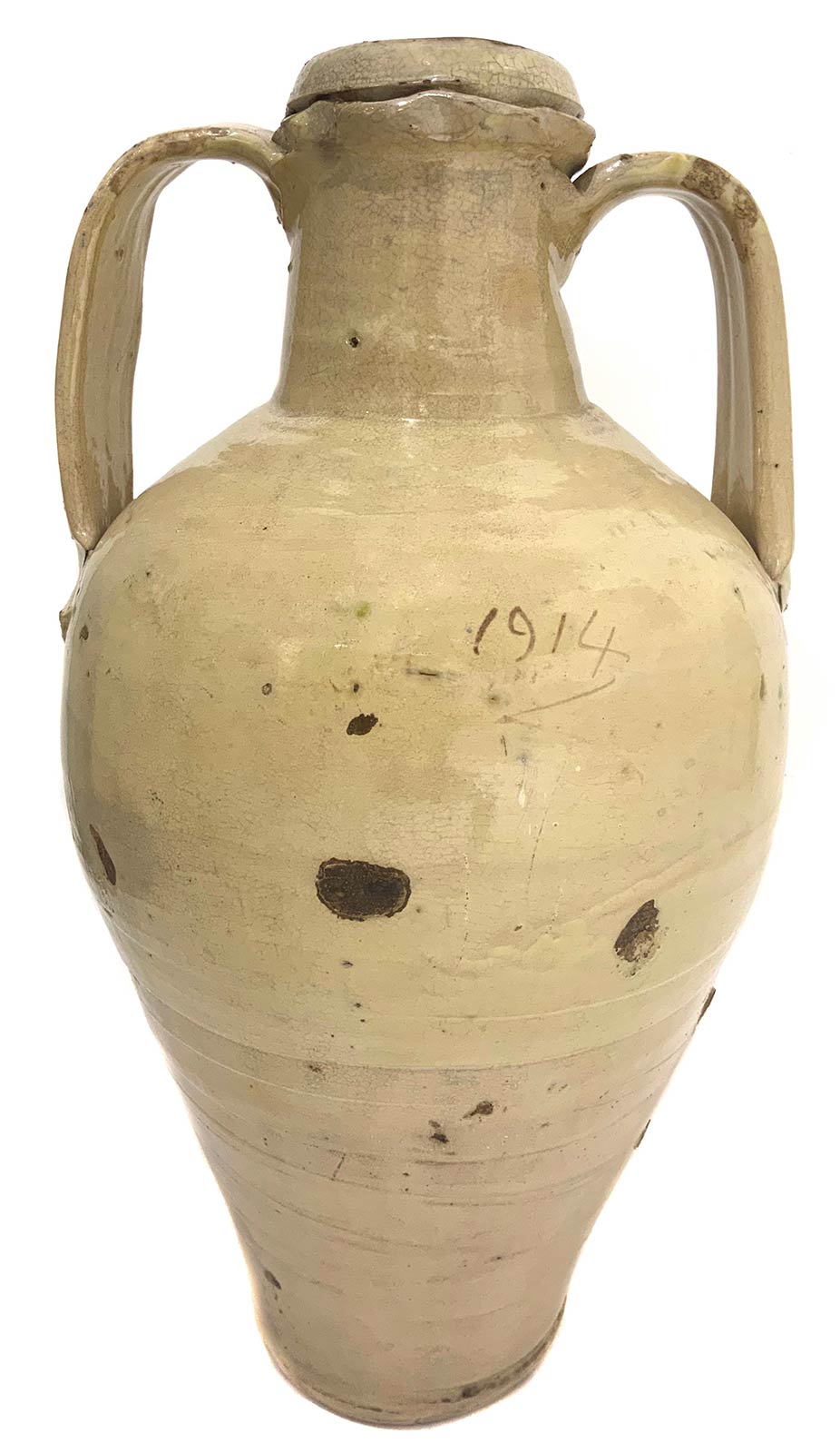 Quartara con manici in maiolica di Caltagirone, datata 1914. H cm 60