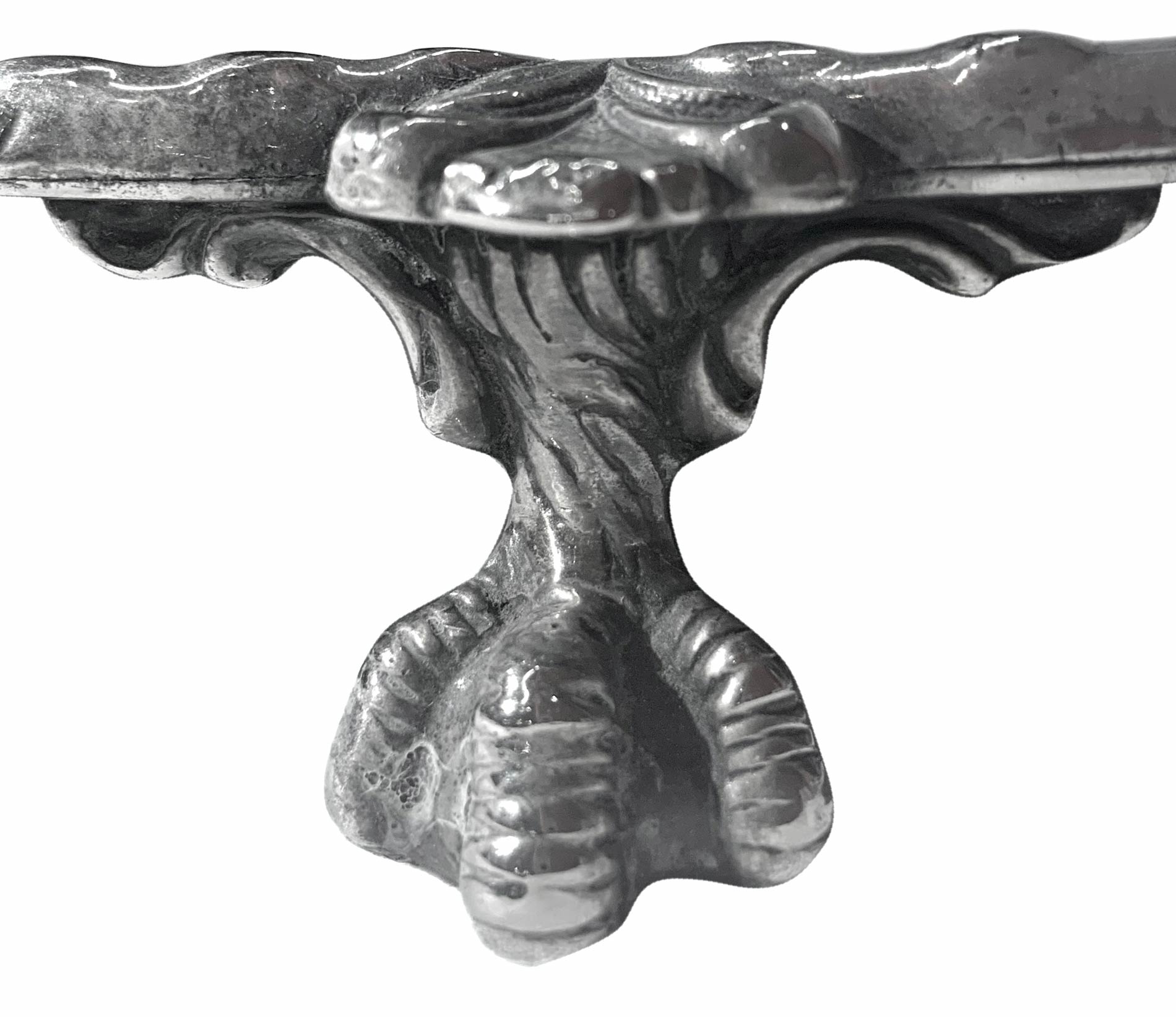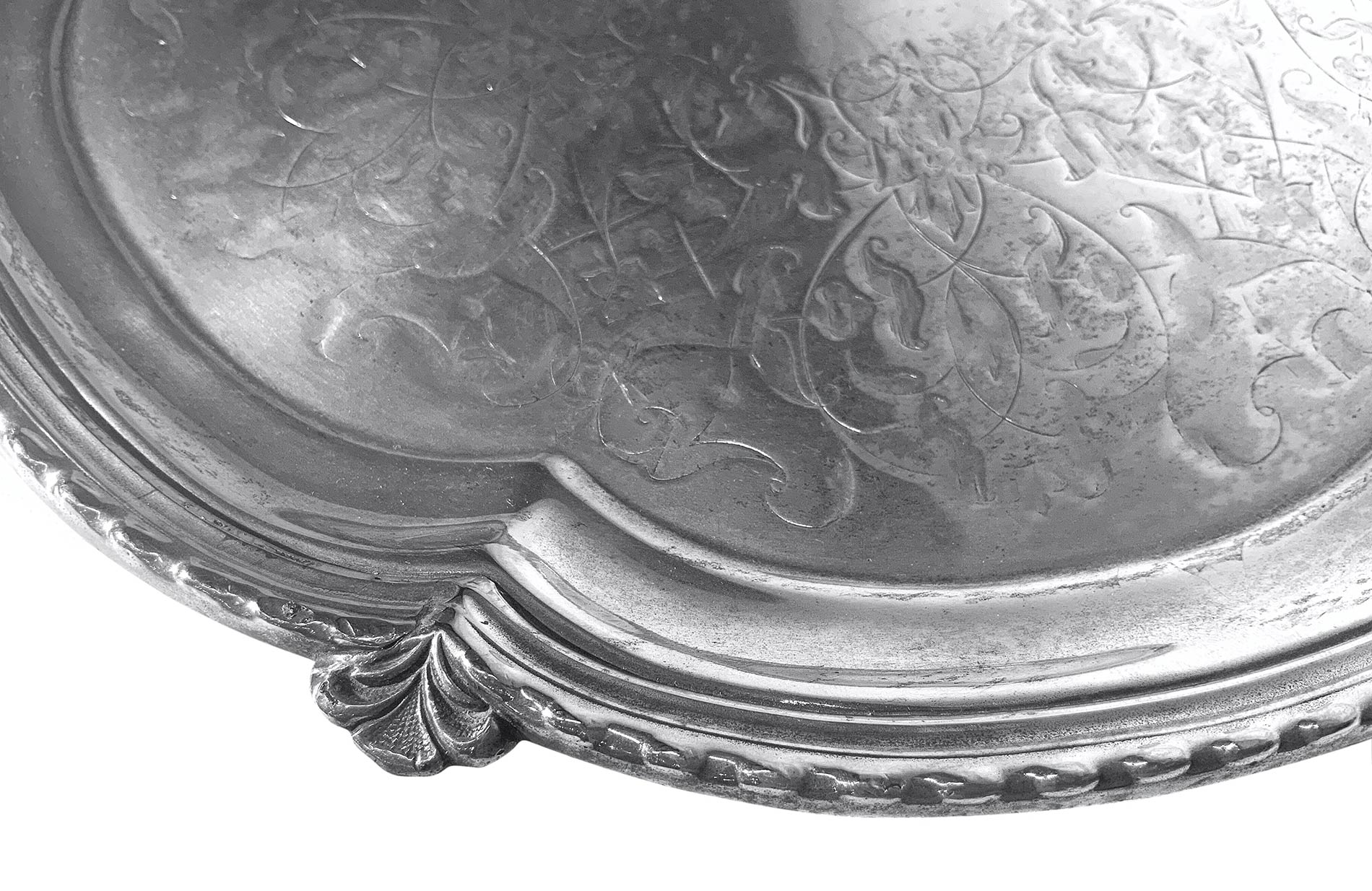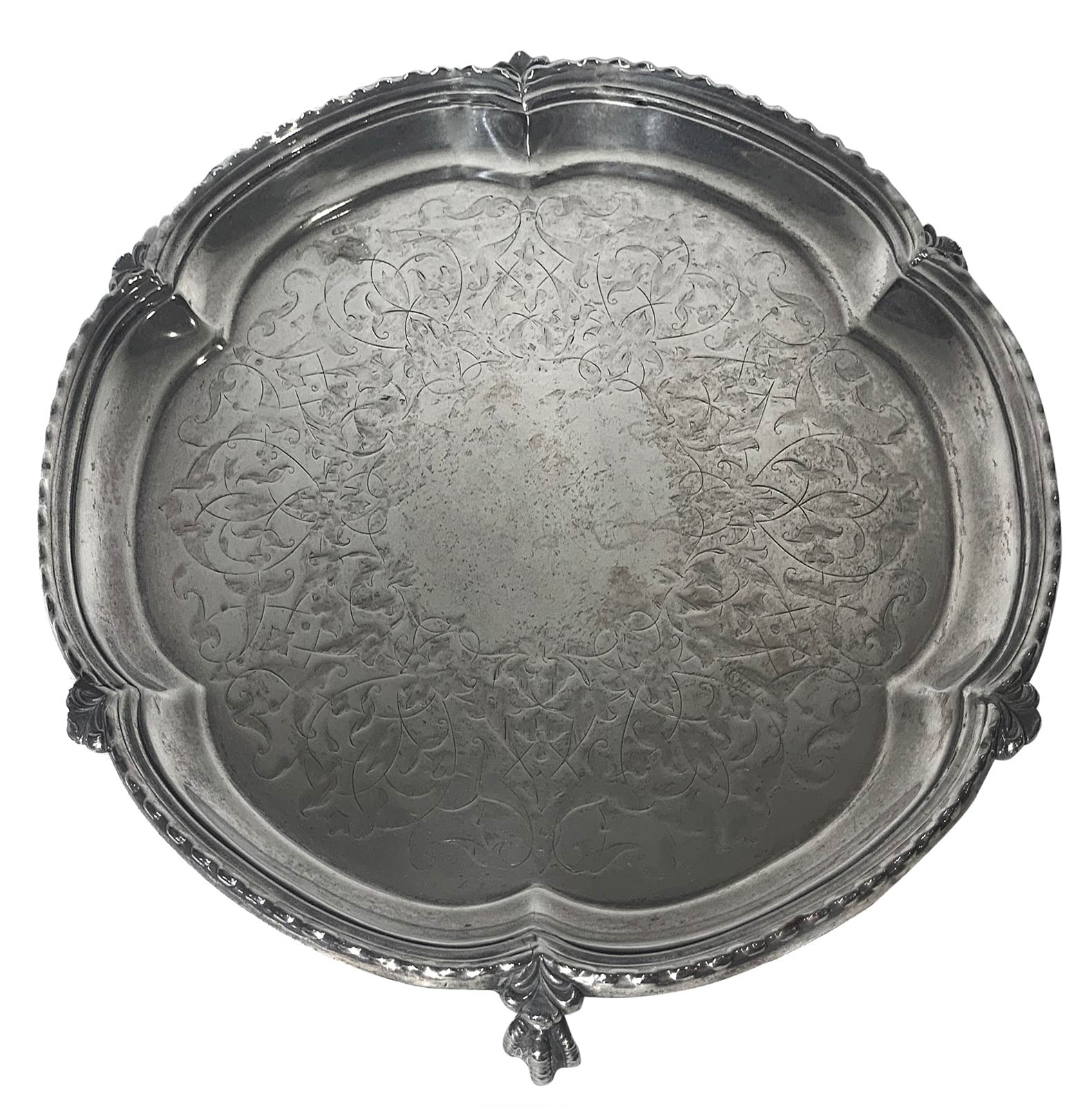Vassoio in sheffield vittoriano, con piedi felini. Diametro cm 25