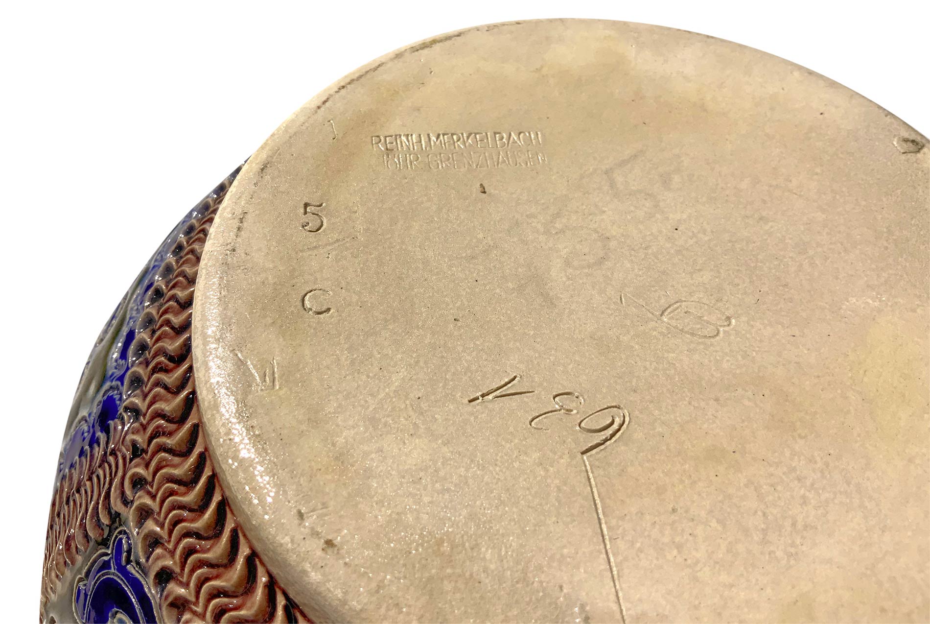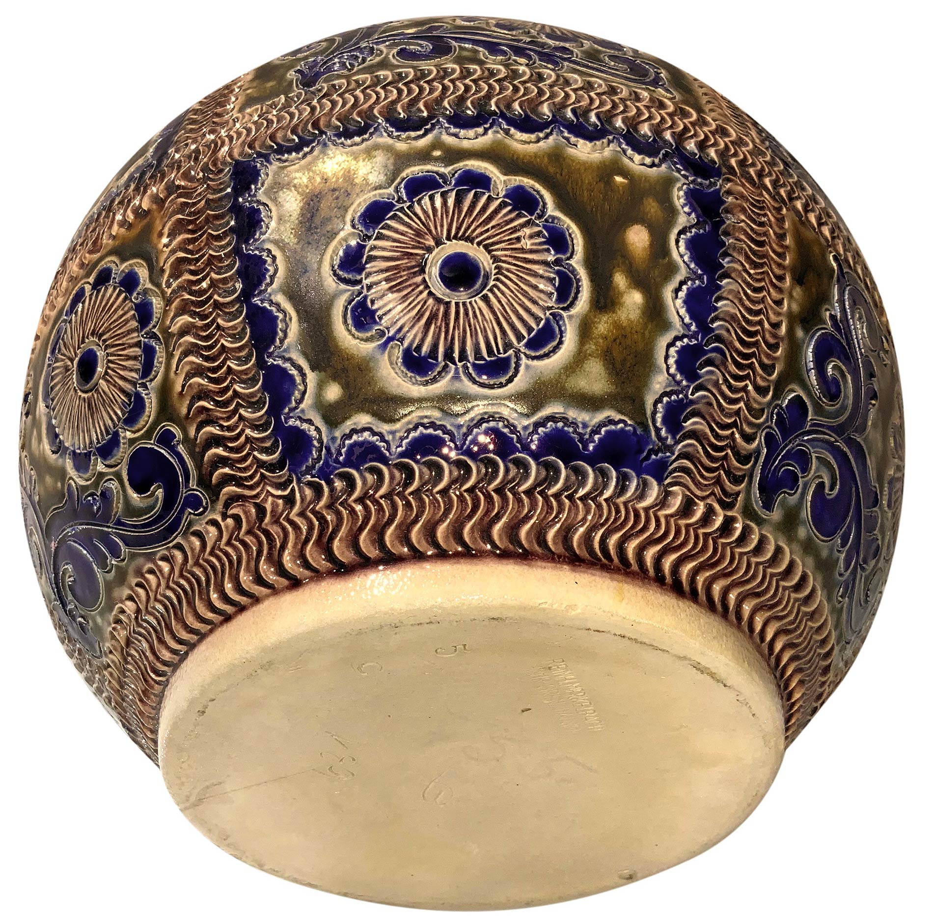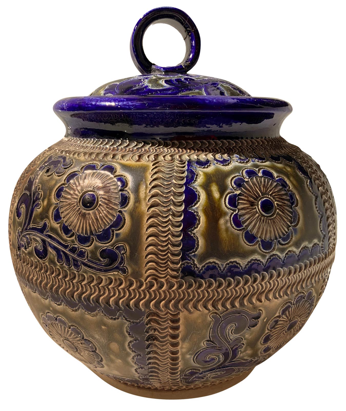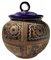 Potiche di colore blu cobalto con decori quadrati. XX secolo. H cm 25, Circon. cm 74. Incollatura al coperchio.