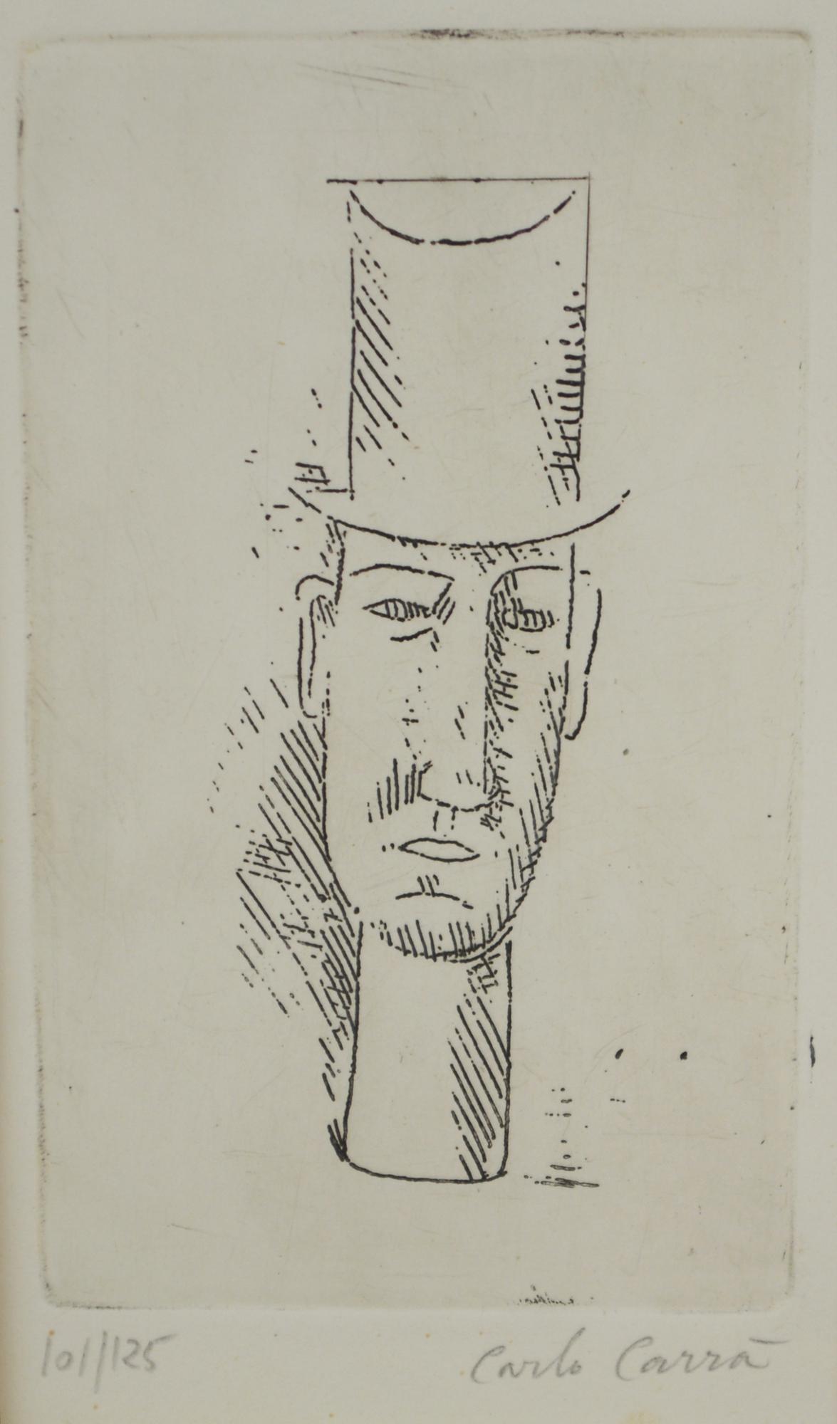 Carlo Carrà FIGURA MASCHILE acquaforte acquatinta, cm 13x8, foglio cm...