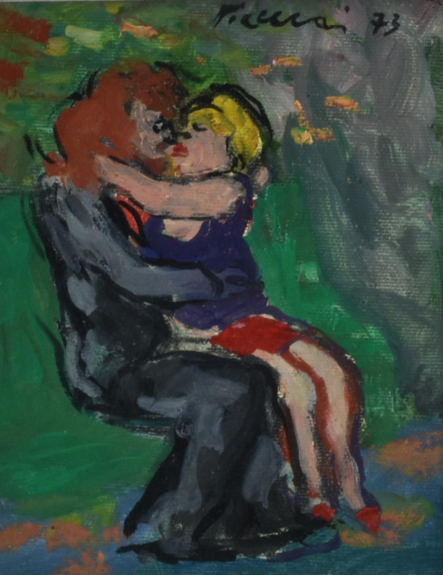 Walter Piacesi COPPIA olio su tela, cm 20x16 firma e data eseguito nel 1973