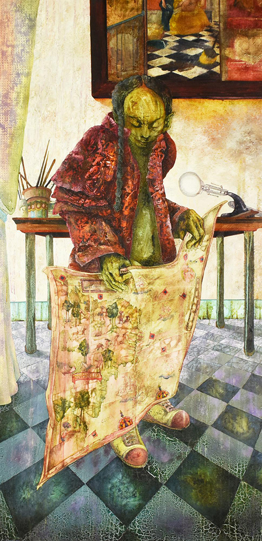 Lot 449 | Giorgio Poppi LOPO HOMEN CARTOGRAFO olio su tela, cm 140x70 sul retro: firma,...