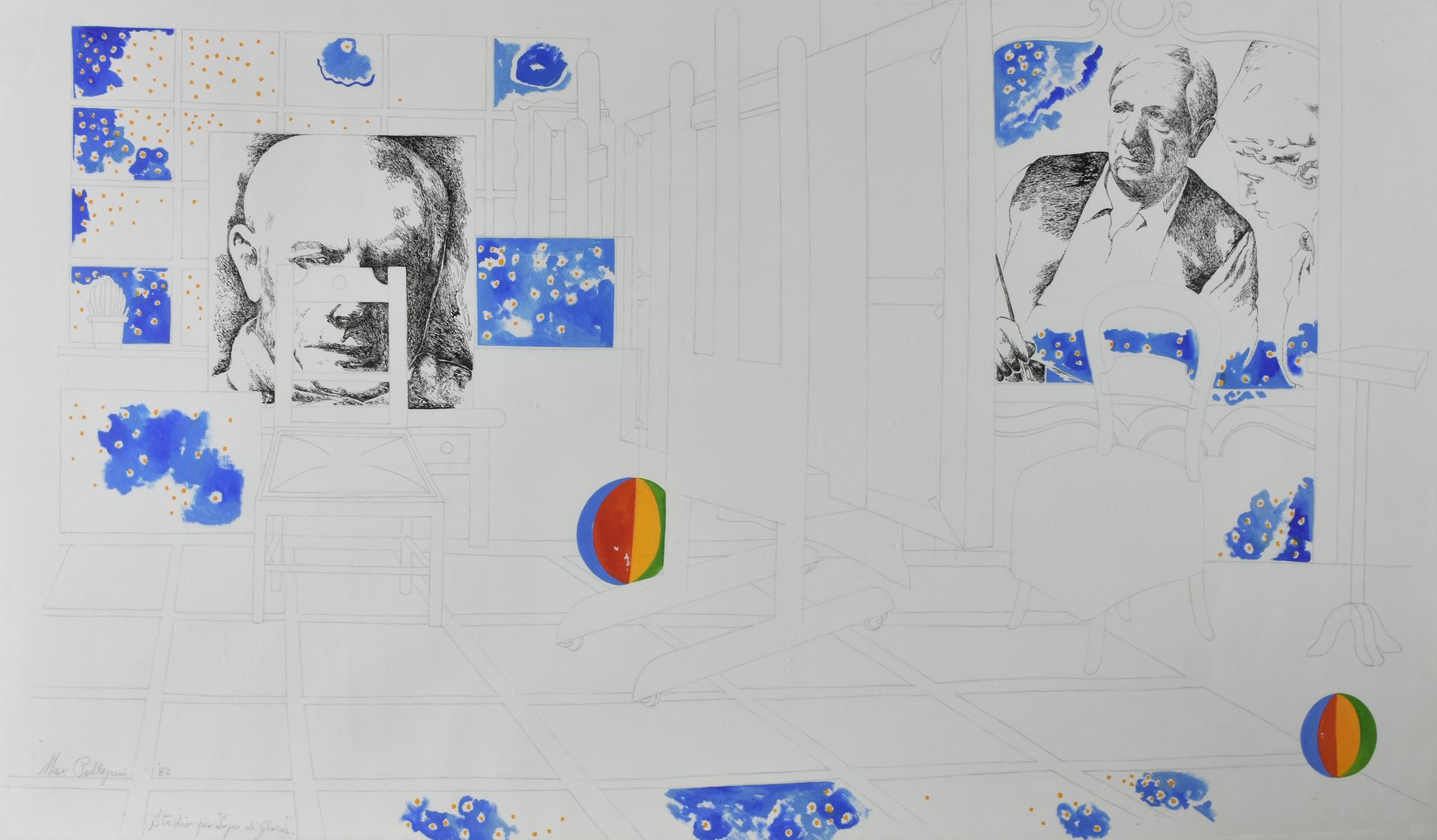 Max Pellegrini STUDIO PER SOGNI DI GLORIA tecnica mista su carta, cm 80x135...