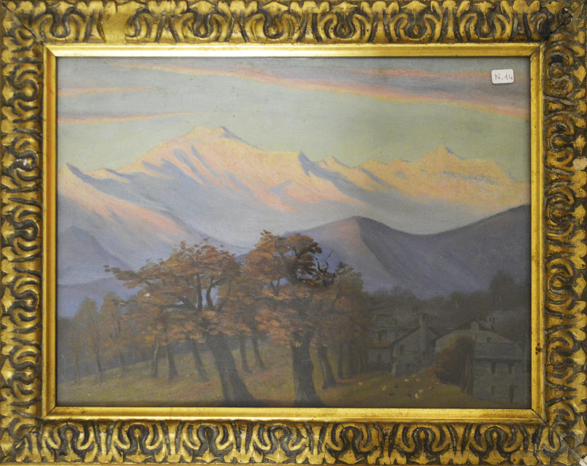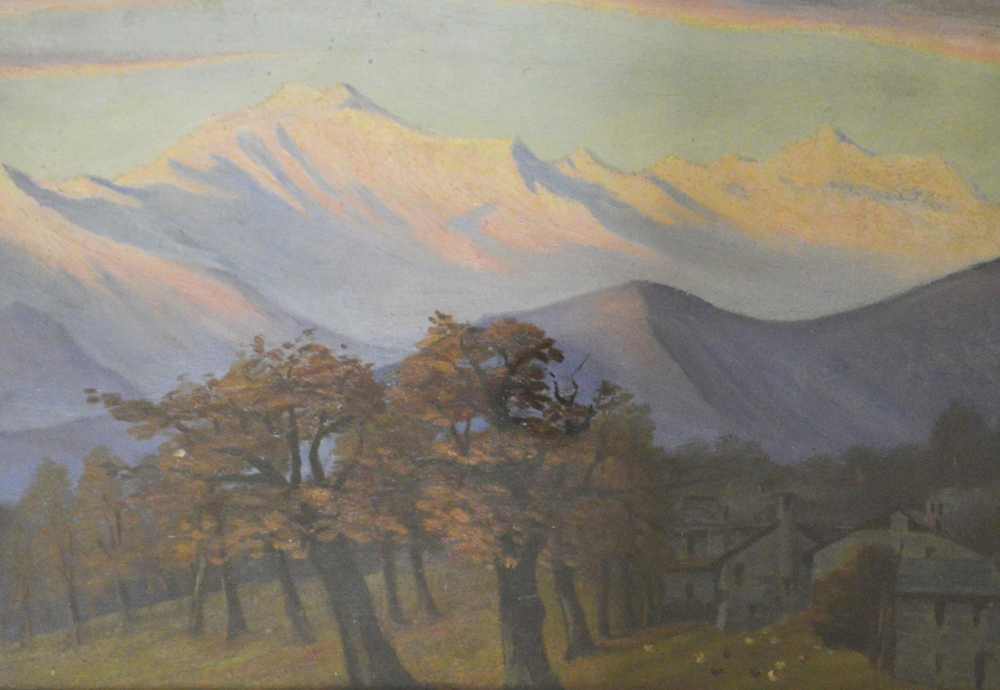 Lot 501 | Ignoto VEDUTA CON MONTI olio su cartone, cm 24x31,5