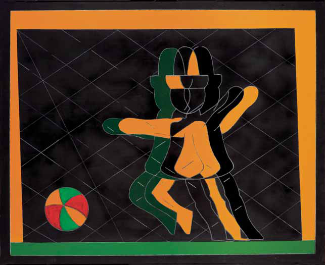 Franco Angeli Roma 1935 – 1988 CALCIO DI RIGORE olio su tela, cm 130x160. Firmato e titolato al verso: Franco Angeli “Calcio di rigore”.