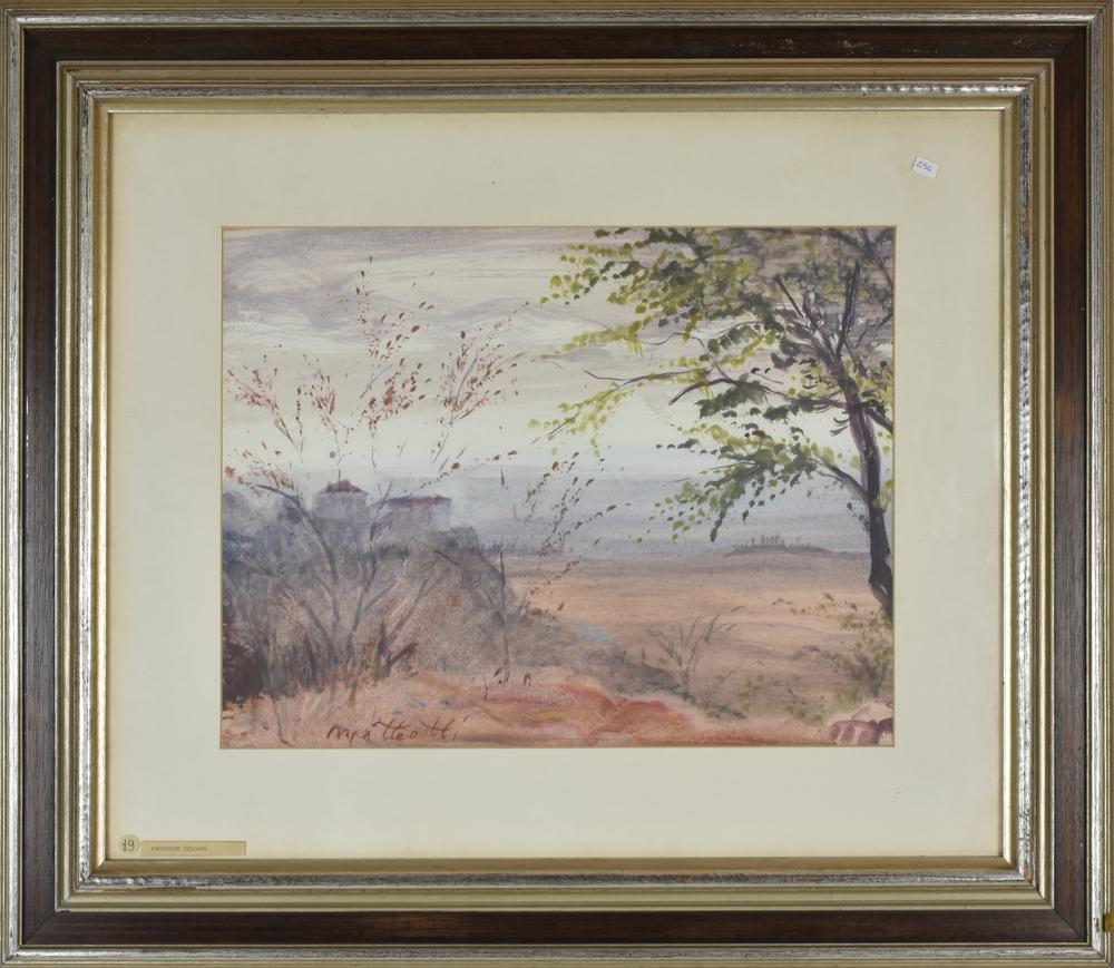 Lot 14 | Aldo Matteotti PAESAGGIO TOSCANO acquarello su carta, cm 35x45 sul fronte: firma