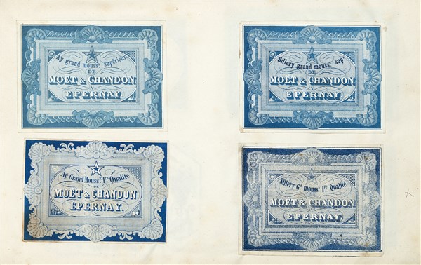 Ricca raccolta di etichette da vino, champagne e liquori in cromolitografia della fine del XIX secolo e gli inizi del XX. Tra le case vinicole rappresentate Moet & Chandon, Mumm e Chateau Lafite. Curiosa l'etichetta "Kuo-hian, Hong Kong".